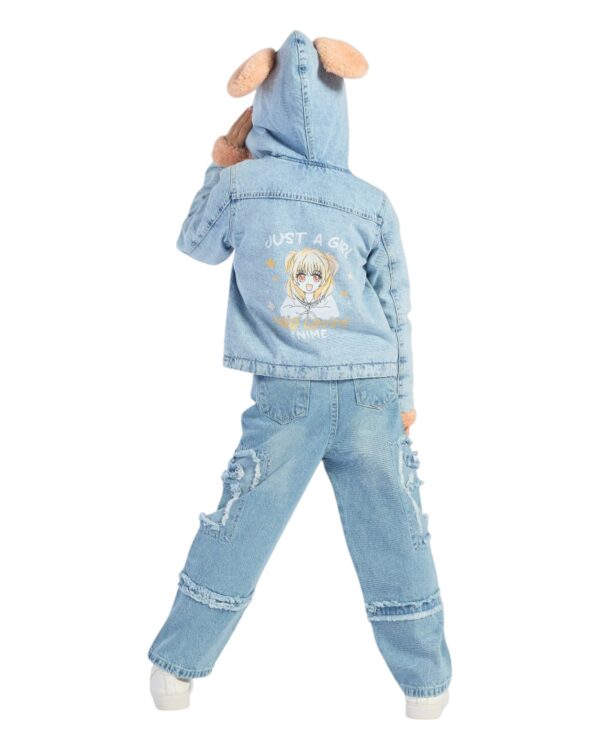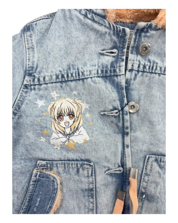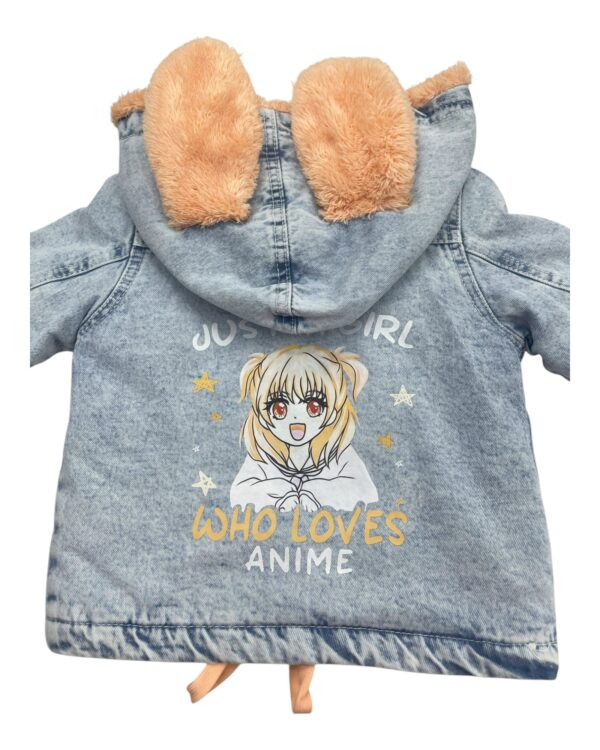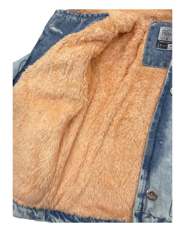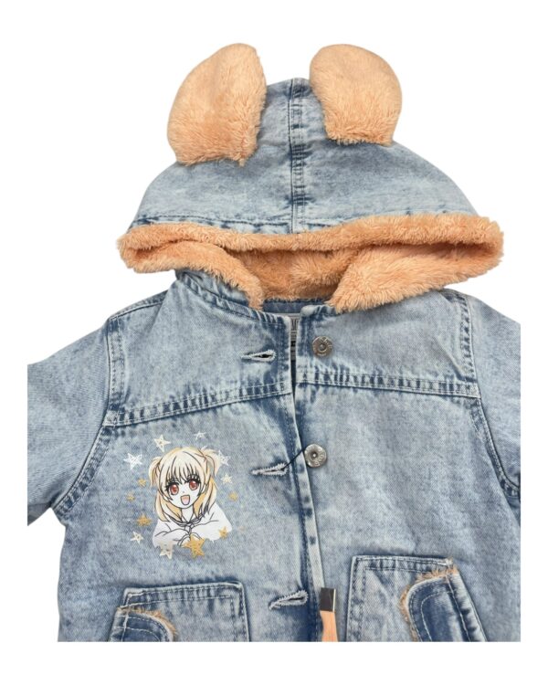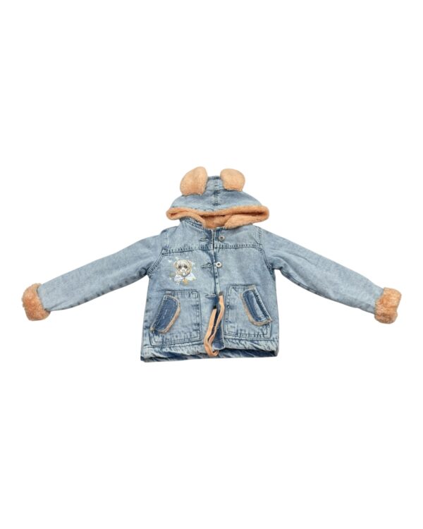 جاكت جينز كبشونه للأطفال مع فرو صناعي وغطاء رأس